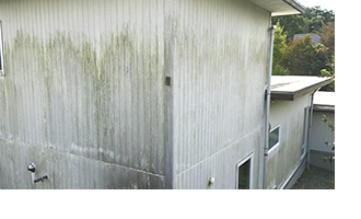 築年数の経ってない外壁、光触媒の外壁で も日の当たりにくい場所ではコケが発生してしまいます。